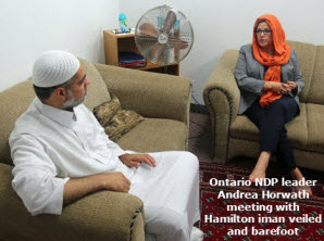 Chahdortt Djavann Chahdortt Djavann: "Islamist have mined (as in minefield) the debates" In a scathing book, the Iranian born essayist lambastes the intellectuals and "useful idiots" who, according to her, are being played. Novelist and essayist, Chahdortt Djavann left Iran for France in 1993. This inveterate enemy of the veil today launched "How to effectively combat Islamic ideology (Grasset), a book which would show how, on the issues of the veil, "Islamophobia" and terrorism "Islamists have mined the debates and any intellectual and political discourse." Le Point (my translation), Nov. 26, 2016 Important: The picture of Ontario NDP leader meeting an Hamilton imam last September scarfed and barefoot is not meant to imply that her host is an Islamist, only that Horwath behaves like someone who is being played. Nov 17 - Developers Helping BelieversA plan to build a new suburb dedicated to Muslims runs counter to Quebec’s values, Premier Philippe Couillard said. Montréal Gazette Nov.15.2016 Is there anything wrong with developers providing devotees of the one true god with affordable rent-to-own housing which pays lip-service to the Koran's prohibition against paying interest and which limits their contact with those who would corrupt them, Christians in particular, as demanded by the Almighty? Ask any English-Canadian politician, with the exception of Conservative leadership candidate Kellie Leitch, and they will tell you this is in keeping with Canadian values, nothing to worry about. Nov 25 - Aggressive Multiculturalism at WorkFaith-In-Your-Face Newscast Comes to Canada Nov 24 - A Consequence of Aggressive Multiculturalism"Aggressive multiculturalism has wreaked havoc in the West", sociologist Mathieu Bock-Côté told Le Point in an interview. "The weakening of our great historical and anthropological anchors", he said, "has pushed people to revolt. This is one of the greatest fears of our time, becoming strangers at home." (My translation) Justin Trudeau's government has embraced aggressive multiculturalism like no other government before it. A signature policy, increased immigration to unprecedented levels, seems to be an attempt at fulfilling the father of multiculturalism's – the current Prime Minister's dad – dream of making Canada a country of minorities so as to deny Québec's claim to special status. Oct 21 - The Hidden Face of FundamentalismBill 62: An Act to foster adherence to State religious neutrality and, in particular, to provide a framework for religious accommodation requests in certain bodies. Quebec opens another difficult debate over the place of religion and minorities in the province with hearings Tuesday into a proposed law that would ban veiled women from receiving government services. Globe and Mail, October 18, 2016 Lepage: But what is the link between the wearing of religious apparel and the fundamentalists? Houda-Pepin: For the fundamentalists, a woman must not be seen in public, right. If, by chance or by necessity a woman must go out in public, she must be invisible. She must, when going out [in public], wear her prison and that way we don't see her figure, we don't see her beautiful face or her hair because it's [sexually] seductive and so on and so forth … This means that the public space is not for these women … It is a segregation [of the sexes] that is done in the public space. We in Québec and in Canada went to the United Nations to denounce apartheid regimes, segregation based on race was unacceptable and I would not accept segregation based on sex because that is what it means, the chadors, the burqas and all these imported ways of dressing which are meant, in the name of freedom of religion, to impose values that are alien and from another century. Freedom of religion, for me, leaves some things to be desired. We will eventually have to confront this reality. I believe that the state's neutrality in religious matters is our best guarantee of freedom of conscience and religion which is why it is so important to define limits and what those limits mean and write it in the [Canadian] Charter of Rights so that it applies equally to all. Fatima Houda-Pepin, from an interview with the former Muslim member of the National Assembly. Oct 1 - Islamic History MonthHistory Through Rose Coloured Glasses Sept 30 - If You Can't Shut Them Up the Old-Fashioned Way, Sue ThemThe Trial of Djemila Benhabib: Day 1, 2 and 3 Sept 24 - Canada: Why the Honourable John McCallum Lied To UsCanadians’ views at odds with Liberal plans [to increase immigration] ... The federal government’s own internal polling contradicts the Immigration Minister’s claim that Canadians are clamouring for increased immigration. Globe and Mail, Sept 23, 2016 Why our politicians lie about immigration. A cautionary tale: When your white children first came into this country, they did not come shouting the war cry and seeking to wrest this land from us. They told us they came as friends to smoke the pipe of peace; they sought our friendship, we became brothers. Their enemies were ours. At the time we were strong and powerful, while they were few and weak. But did we oppress them or wrong them? No! Time wore on and you have become a great people, whilst we have melted away like snow beneath an April sun; our strength is wasted our warriors dead. Shinguacouse, Ojibwa chief New challenges! Emigration in the Cause of Allah Aug 28 - The Hijab and the RCMPIf you’re wearing a hijab, be wary of RCMP recruitment drive ... More than 400 women are involved in a lawsuit against the RCMP for allegedly ignoring rampant sexual harassment. Shireen Ahmed Special to the Globe and Mail, Aug 26 For the Prophet and his out-of-this-world Patron, the sight of a single strand of a woman’s hair could cause a man to experience a Pavlovian-like reaction, an uncontrollable urge to hump the owner of the stray curl then and there, which is why He sent the surah al-Hijab i.e. An–Nûr (the Light). An argume