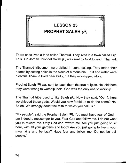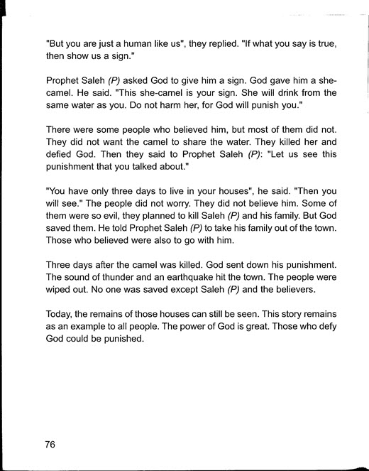 Not surprisingly, perhaps, the cities Allah crows about destroying were ones with which Muhammad was familiar, from stories he heard and from stumbling unto ruins, as is undoubtedly the case with Petra. He could not have avoided it on his numerous treks north from Mecca to Syria during his more than two decades as an itinerant merchant. This was before the Almighty chose him as His mouthpiece. To Allah and Muhammad, Petra was Thamud. The people of Thamud were wiped out for not heeding the warning of the prophet Salih, the only non-biblical seer, apart from Muhammad, found in the Koran (recommended reading: Getting to Know Allah, "Salih and the Destruction of Thamud," Boreal Books). God is very proud of what He did to the inhabitants of Petra and their city. In at least nine surahs, Thamud is mentioned as a place and a people that He obliterated. If not for this last admission, you might confuse Allah’s passion for Petra with that of a tourist who visits an impressive faraway shrine and keeps on returning to it during conversations to impress his friends. My Book of Islam tells a most succinct and coherent, if simplified, account of the genocide, complete with an outline of the still-existing façade carved in rock. The authors, of course, reassure children that God got the believers to leave before He unleashed his murderous wrath; as if this made it alright, even if He did not have to, according Khidr. Khidr makes another of the most chilling and far-reaching observations in the Koran, whose significance was all too evident in the attack on the World Trade Center. Allah uses his sinking of a ship, he and Moses boarded to justify killing believers if it means unbelievers will not escape with their lives. 18:71 So, they set out; but no sooner had they boarded the ship that he made a hole in it. He (Moses) said: “Have you made a hole in it so as to drown its passengers? You have indeed done a grievous thing.” At the end of their journey together, Khidr tells Moses why he sunk the ship. 18:79 “As for the ship, it belonged to some poor fellows who worked upon the sea. I wanted to damage it, because, on their trail, there was a king, who was seizing every ship by force. Should the kids still harbour any doubts about killing a bunch of believers later in life and leaving a few dead believers as collateral damage, they may be provided assurances that God will do right by the believers they may kill in their zeal to rid the world of those who won’t acknowledge Allah’s Supremacy. They have His spokesman’s word on it: Narrated Ibn Umar: Allah's Apostle said, "If Allah sends punishment upon a nation then it befalls upon the whole population indiscriminately and then they will be resurrected (and judged) according to their deeds." Bukhari 88.224 The usual excuse for Allah turning a city into rubble and crushing its inhabitants beneath—that is, when He is not showering them with hot rocks or shrivelling them to death in hot hurricane force winds—is a disregard of a stranger’s or kin’s warning of His pitiless vengeance if they did not do as they were told. In My Book of Islam, the children are informed it is the killing of the warner’s camel, a white she-camel provided as proof that Salih is indeed an emissary from the Almighty that sends God on another of His trademark genocidal rampages. In the Koran, the camel is only hamstrung, but killing the camel requires no explanation, and for children it is a better justification for what comes after. *** In one surah, the camel is hamstrung after Salih requests that it be allowed to graze. 11:64 “O my people, here is the she-camel of Allah, a sign onto you. Let her graze in Allah’s land and do not do her any harm, lest a swift punishment should overtake you.” 11:65 However, they hamstrung her, and so he said: “[You can] stay in your houses [only] for three days. This is a promise which will not be belied.” 11:66 Then, when our Command came, We saved Salih and those who believed with him, by a mercy of Our Own, from the disgrace of that day. Your Lord is truly the Strong, and Mighty. 11:67 And the evildoers were overtaken by the [thundering] cry and they lay prostrate in their own homes, 11:68 As if they never dwelt therein. Truly, Thamud disbelieved their Lord. Away with Thamud! In another, the camel is hamstrung after Salih asks that they respect its drinking schedule. 26:155 He said: “This is a she-camel; this has a drinking day, and you have a fixed drinking day. 26:156 “Do not cause her any harm, or else the punishment of a Great Day will smite you.” 26:157 However, they hamstrung her, and became full of remorse. It did not matter that the people who hamstrung the camel regretted their action; it is “Away with Thamud!” *** The story of the destruction of Thamud is explained to children in My Book of Islam. In that book’s account, it is Salih asking that the camel’s drinking schedule be respected that sets off a series of unfortunate events starting with the cutting of the camel’s hamstring in the Koran; in My Book of Islam, as mentioned earlier, the camel is killed.