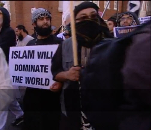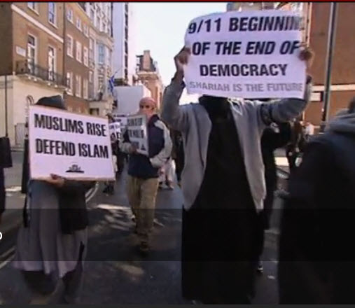 Pictures from a rally in London England demanding the abolishment of democracy and the establishment of Sharia law. CBS 60 Minutes, Nov 2, 2014 Face-to-face with an extremist The authors of United Against Terrorism argue that calling a Muslim a moderate is redundant: The term “moderate Muslim” implies that if one just identifies as Muslim that one is not a “moderate.” This term is meant to divide and classify Muslims based on Islamophobic (sic) jargon. A practicing Muslim is by nature moderate and so one should avoid this redundancy. Sam Harris: Many authors have pointed out that it is problematic to speak of Muslim "fundamentalism" because it suggests that there are large doctrinaire differences between fundamentalist Muslims and the mainstream. The truth, however, is that most Muslims appear to be "fundamentalist" in the Western sense of the world—in that even "moderate" approaches to Islam generally consider the Koran to be the literal and inerrant word of the one true God … ... At this point in their history, give most Muslims the freedom to vote, and they will freely vote to tear out their political freedoms by the root. We should not for a moment lose sight of the possibility that they would curtail our freedoms as well, if they only had the power to do so … This situation must be remedied, but we cannot merely force Muslim dictators from power and open the polls. It would be like opening the polls to the Christians of the fourteenth century. End of Faith, W. W. Norton, 2004, p. 132 Harris' hope for the world is still with the so-called "moderates", as unlikely as it is that they will be willing, or allowed to change Islam before Islam inevitably changes us, or kills us. It does not seem much of an exaggeration to say that the fate of civilization lies largely in the hands of "moderate" Muslims. Unless Muslims can reshape their religion into an ideology which is basically benign—or outgrow altogether—it is difficult to see how Islam and the West can avoid falling into a continual state of war, and on innumerable fronts. Nuclear, biological and chemical weapons cannot be uninvented … weapons of mass destruction will soon be available to anyone who wants them. p. 152 Bernard Payeur